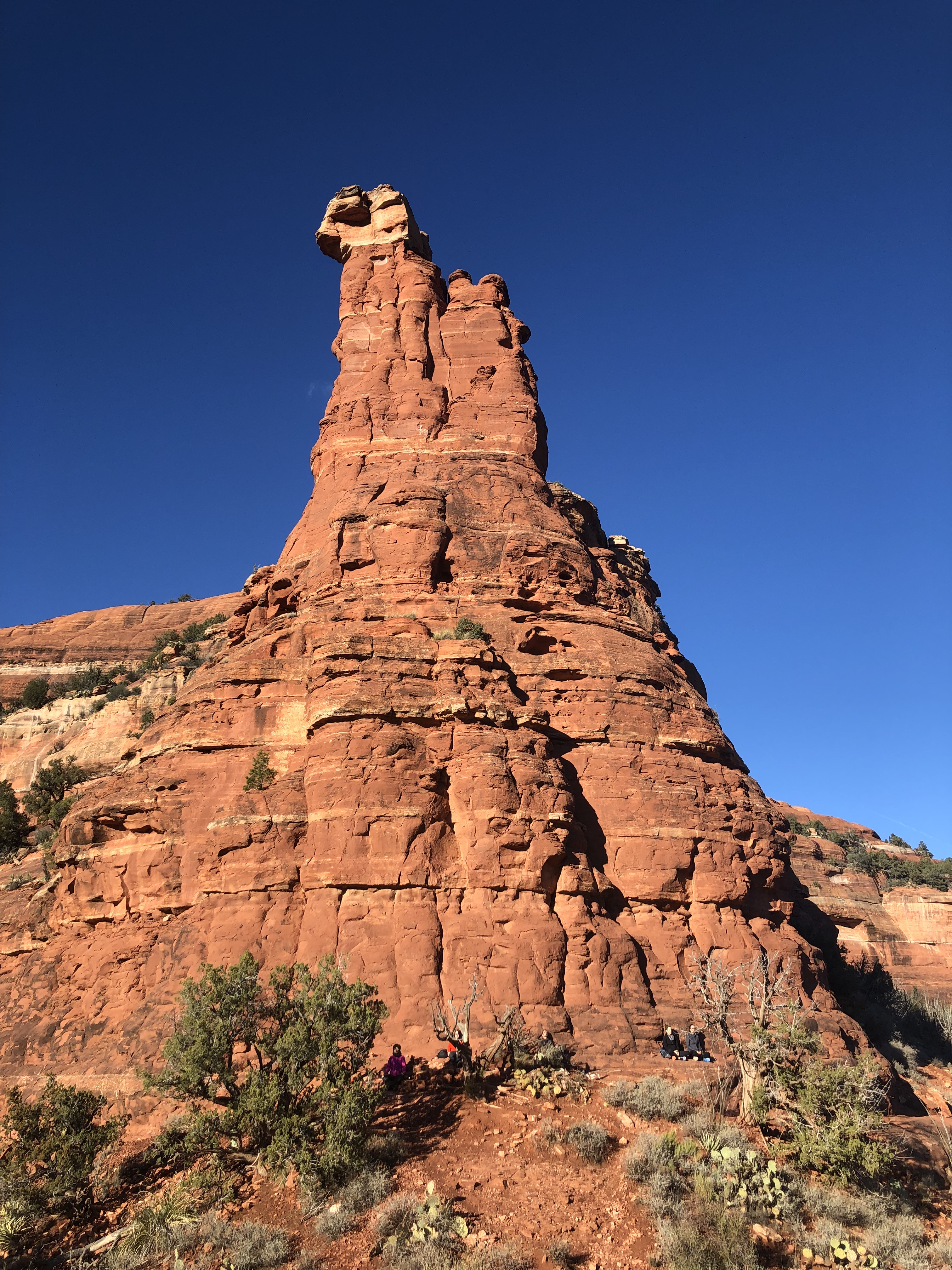 Too early to check in we went on one of the first marked sport of the map, after of course, a gas station bathroom break, snickers, and water. Looming in from of us was the awe-inspiring Bell Rock. We weaved around and around, up and down, left and right. I kept thinking of a fortune cookie saying, “to go up you must first go down,” or “to go left you must first go right.” I could see the giant rock, but on the path, we seemed to not be getting any closer to it, though eventually, we did get to the base of the rock.