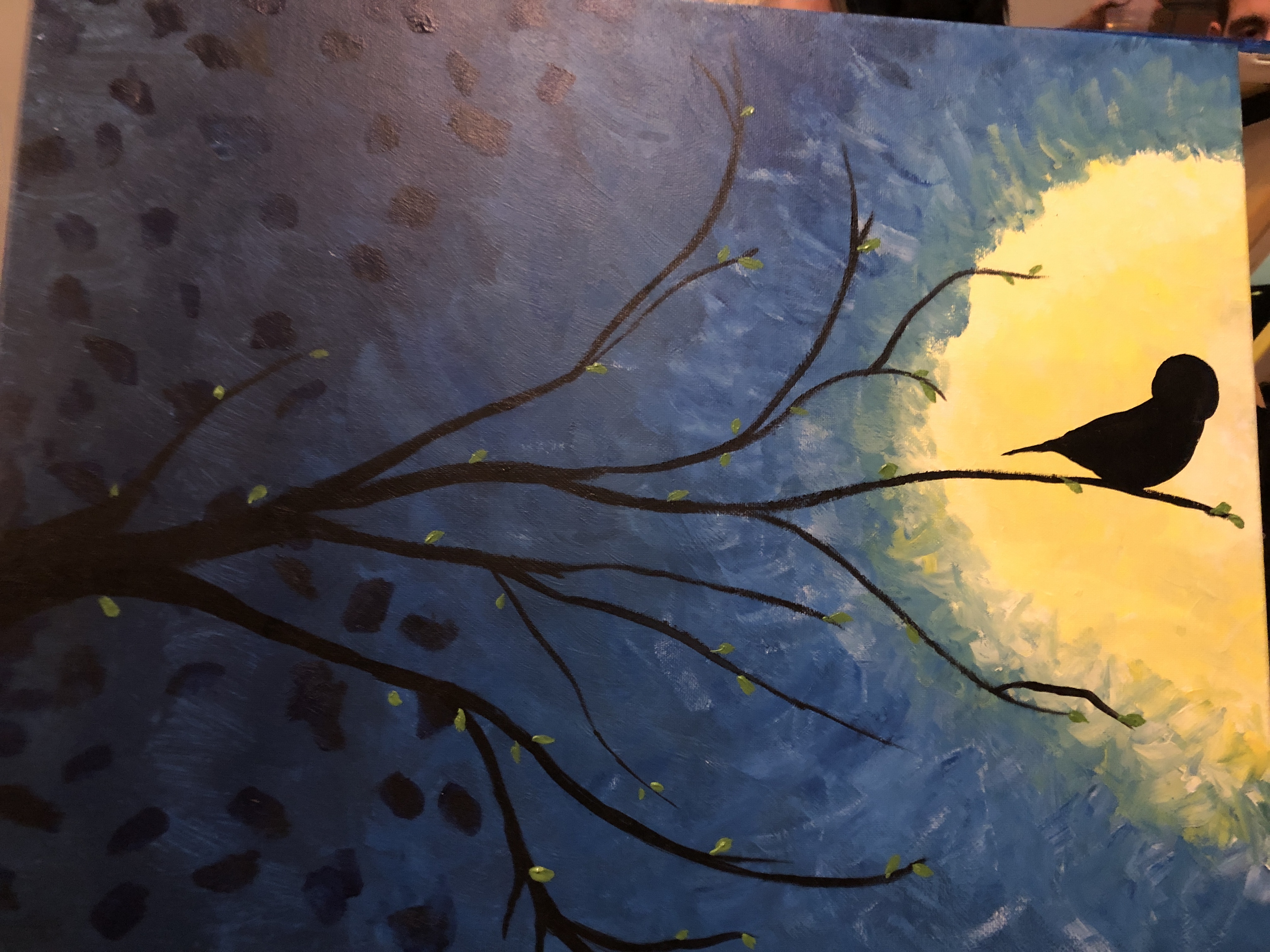 We googled things to do the first night and found a paint night nearby. We trudged off to paint together at a couples painting, that we both liked how it would look alone. We sat down in the group and of course, the instructor wanted to ask everyone about who they were and what their relationship was. I wasn’t going to say anything, but my friend said, “We are two mom’s that have come together because we have lost a child on the same day.” There was a heartbeat of silence and then a thank you for sharing our story. She was right, there is no need to keep quiet just to make others not feel uncomfortable. We need more open and honest communication in this world. Our paintings, of course, were Blackbirds and full moons.