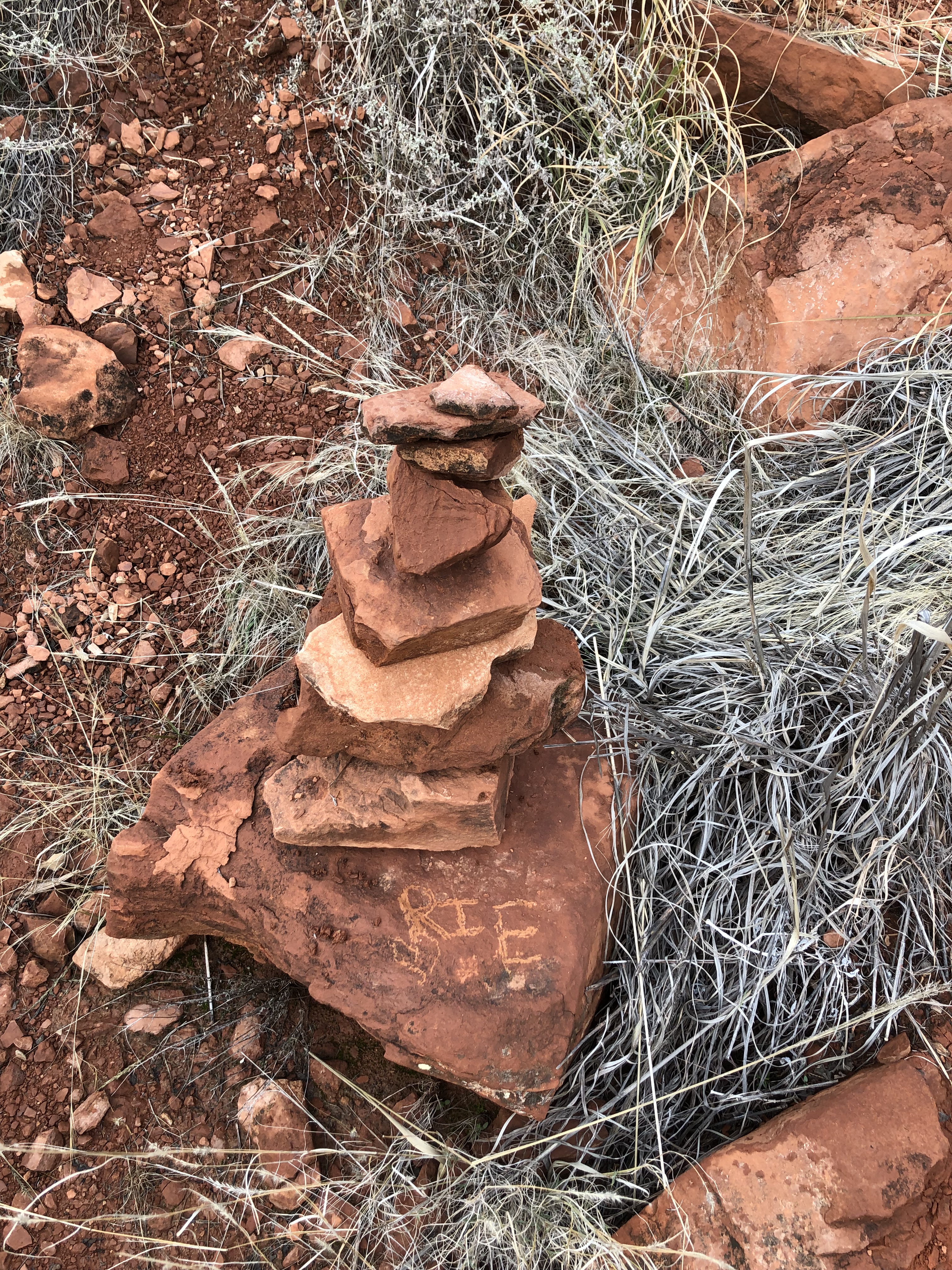 We headed next to Airport Mesa and again I climbed up alone. This spot had wire rope to hold onto. I was thankful since I tend to get vertigo. We then went to the pastor’s recommended spot next in Boynton Canyon and a hike to the Kachina women rock formation. She is a Native American landmark. Up and up we hiked, neither of us in great shape. Finally, we found ourselves standing at the base. I went over to the first level by myself. As I stared at the cairns placed around the rock, I had the overwhelming feeling of thousands of people that had journeyed there in their grief to cry, to spread ashes or to build cairns in someone’s memory. (Cairns are rocks stacked on top of each other in an artistic formation). I felt a huge wave of sadness and cried for those that had traveled here before me. I then felt relieved and a sense of peace.